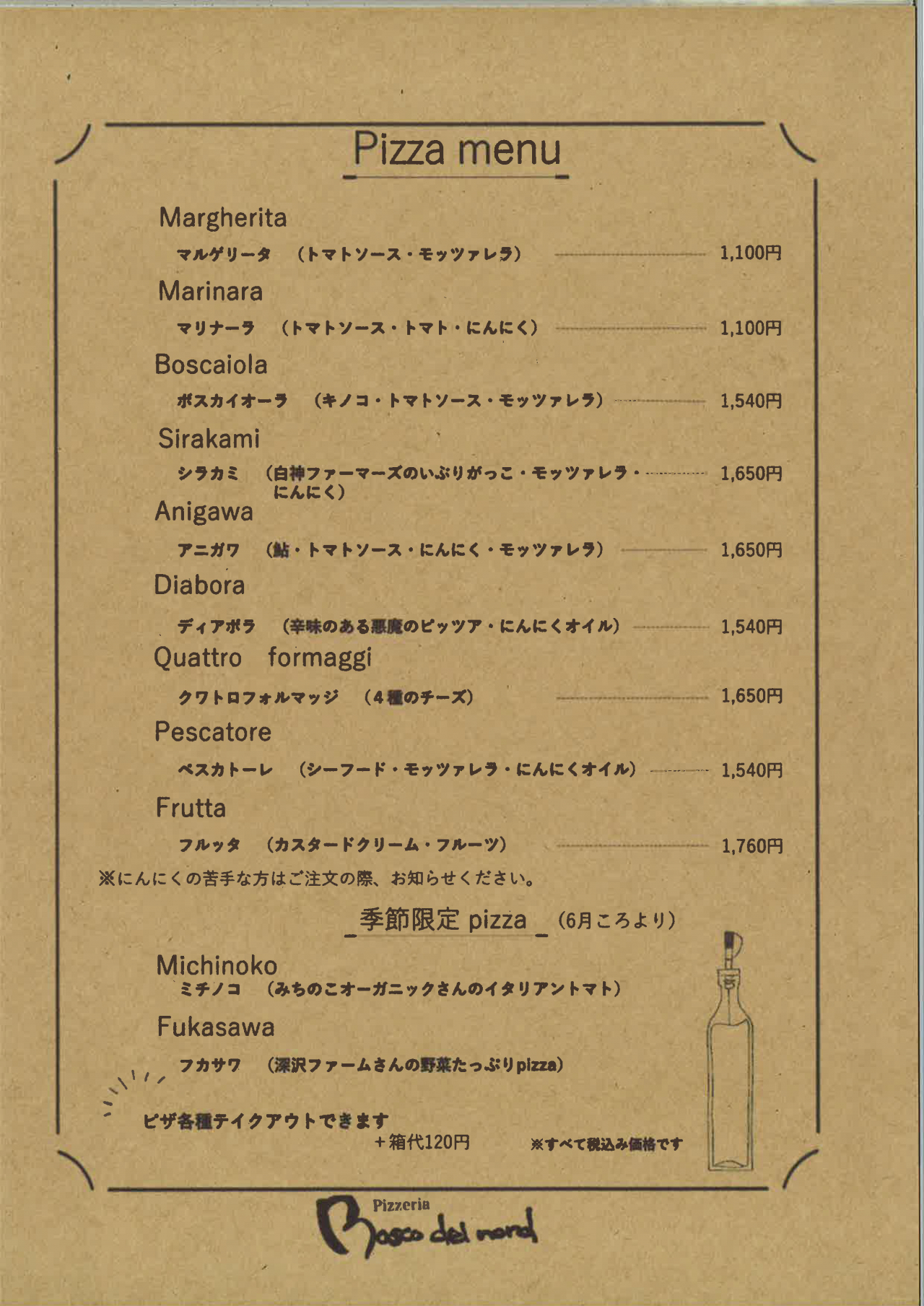 ・マリナーラ 1,080円・ボスカイオーラ 1,512円